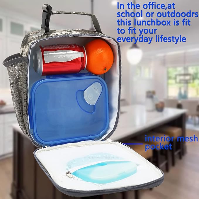 FlowFly Lunch box Insulated Soft Bag Mini Cooler Back to School Thermal Meal Tote Kit for Girls, Boys,DigitalCamo