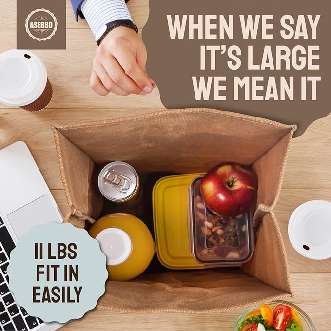 • SUPERIOR TEMPERATURE RETENTION – Designed with extra-thick aluminum insulation, this paper bag lunch bag reusable keeps meals hot or cold for hours. The leakproof interior ensures no spills, making it perfect for work, travel, or outdoor dining.