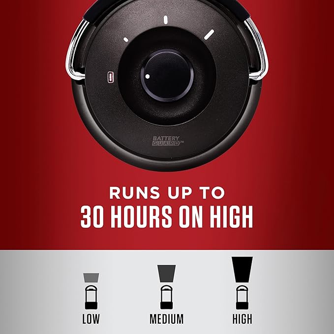 • 3 modes: high, medium, low; lasts up to 30 hours on high and uses 4 D batteries (sold separately)