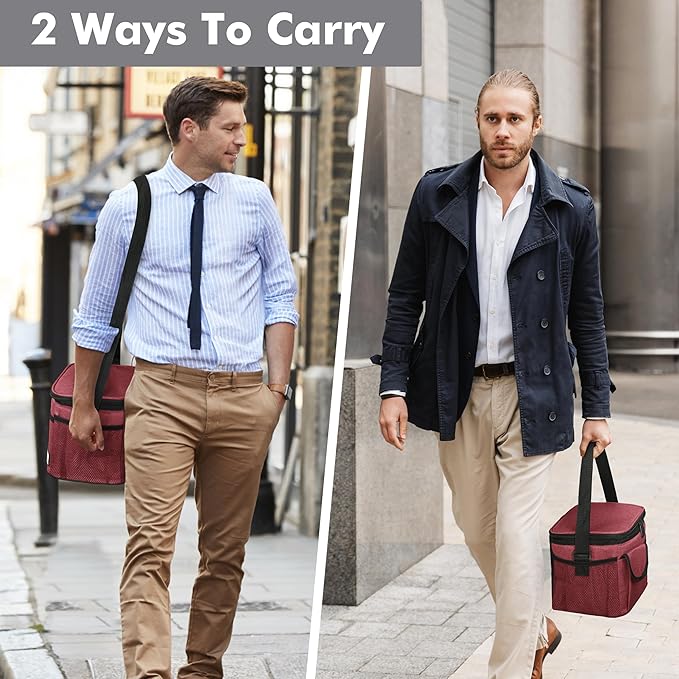 • Convenient Design-Lunch bag features an adjustable shoulder strap for easy carrying, whether you're headed to work or the gym. The double zipper design allows for quick access, while multiple pockets—including 4 additional compartments and 2 side mesh pockets—make it easy to store personal items. This lunch bag for women is both functional and stylish.