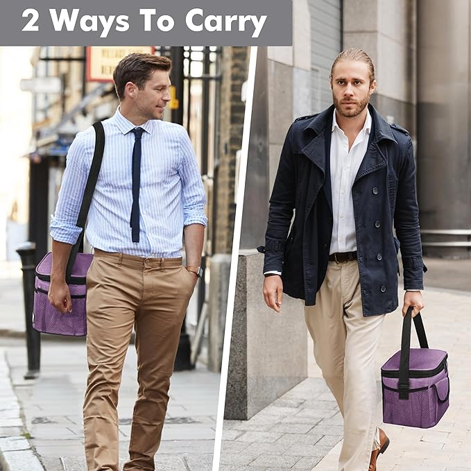 • Convenient Design-Lunch bag features an adjustable shoulder strap for easy carrying, whether you're headed to work or the gym. The double zipper design allows for quick access, while multiple pockets—including 4 additional compartments and 2 side mesh pockets—make it easy to store personal items. This lunch bag for women is both functional and stylish.