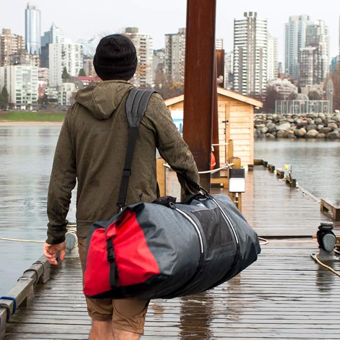 • 100% WATERPROOF - No amount of rain, snow, dirt, dust, or sand can penetrate this bag. With all the storage and functionality of a regular duffel and the added benefit of full waterproof protection, this bag will protect against even the most extreme weather.