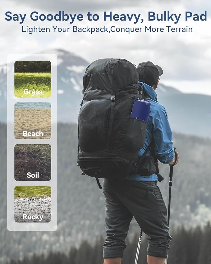 • Built to Last, Crafted for Comfort: Constructed from polyester pongee with TPU lamination technology, this camping mattress pad is waterproof, compact, durable, and resistant to wear and tear. It's perfect for family camping, hiking, backpacking, tent camping, van camping, and can also serve as a comfortable air bed for guests at home.