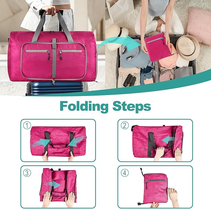 • Foldable and Spacious travel bag:The travel organizer bag can be folded into a really small size taking up so little space but opens up to have about 65L capacity of travel bags to use as a luggage bag in case that your suitcase swells. This travel duffel bag is designed to work best with bag packing cubes - to give you an organized lightweight travel experience.