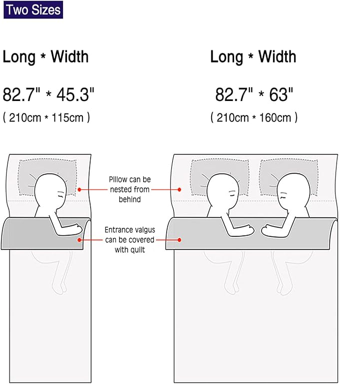 • 【Material & 3 Size of Sleeping Bag Liner】: polyester fiber, breathable, will add a few extra degrees during chilly nights, no pilling or fade, you will feel very comfortable and soft, great even for sensitive skin; three size available: 115 X 210cm/83x45’’ for one person or 160 x 210cm/83x63’’ or 180x215cm/70.9x84.6’’ for two persons, great size even for tall people to stretch out legs. The opening length is 100cm/39’’ for you to get in