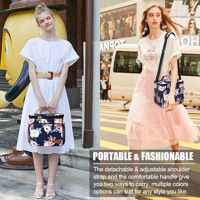 Tiblue Insulated Lunch Bag for Women/Men, Reusable Lunch Box for Office Work School Picnic Beach, Leakproof Freezable Cooler Bag with Adjustable Shoulder Strap for Kids/Adult(Medium, Romantic Rose)