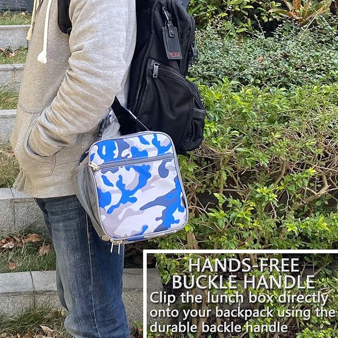 FlowFly Kids Lunch box Insulated Soft Bag Mini Cooler Back to School Thermal Meal Tote Kit for Girls, Boys, Camo