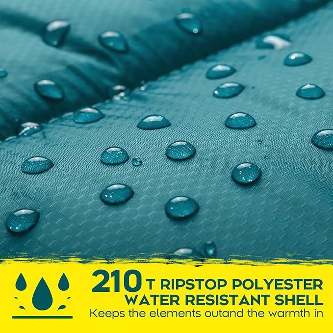 • Water Repellent & Ripstop Fabric: Outer shell are made from 220T ripstop polyester that washes incredibly well, protect against windy and wet weather prevent you from getting damp also durable for resists damage from stones, branches and other natural elements.