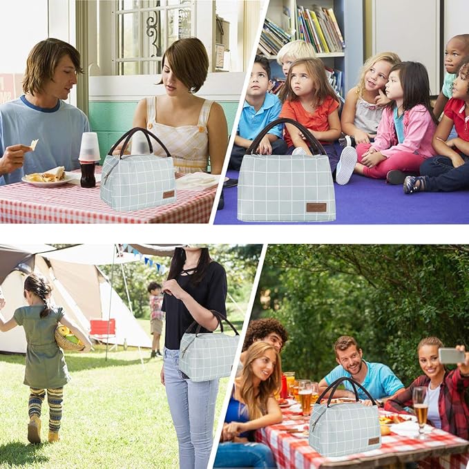 Buringer Insulated Lunch Bag Lunch Box for Women Men Adult Lunch Tote for Work Picnic Travel (Green Plaid)