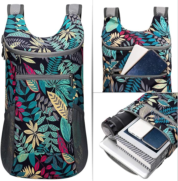 • Convenient and Lightweight: This hiking daypack is easy to fold and fit into an ultra-compact pouch. It's convenient to pack in your suitcase, purse, or car as a travel backpack without taking up too much space. Unfold size: 8.27x6.30x13 inches, Ultralight weight: 4.59oz