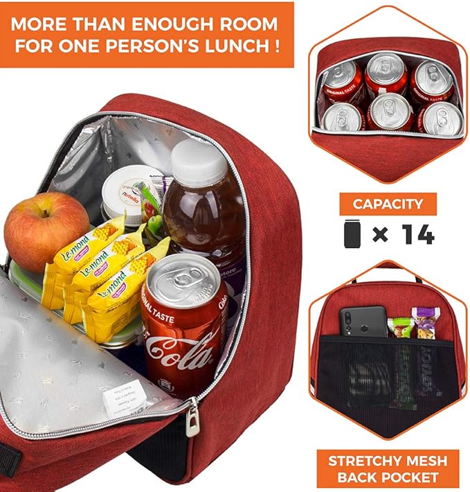 • LARGE RED LUNCH BOX: This kids lunch bag measures 12 x 8.5 x 6 inches (L x W x H) and can easily fit up to 14 cans or one boys lunchbox. This medium lunch bag for boy girl is perfect for school, field trip, picnic, beach, gym, hiking, camping, travel, work or office