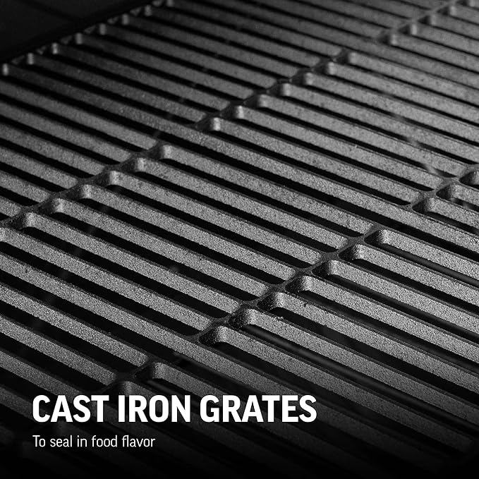 • LARGE COOKING AREA - 250 square inch grilling area with thick cast iron cooking grates, can cook up to 12 burgers at once