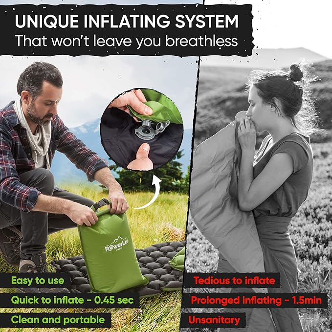 POWERLIX Ultralight Sleeping Pad for Camping with Inflating Bag– Compact Lightweight Camping Mat, Outdoor Backpacking Hiking Traveling Airpad Camping Air Mattress Sleeping Mat
