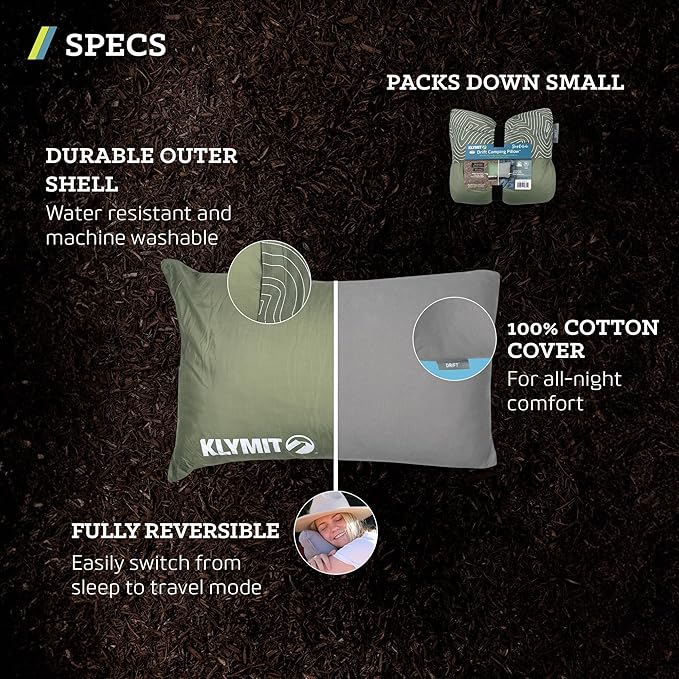 • DON'T CAMP WITHOUT IT. Elevate adventures with the Drift Camping Pillow. Travel-friendly with a water-resistant shell, machine-washable cover and packed with memory foam — camping has never been so comfortable.