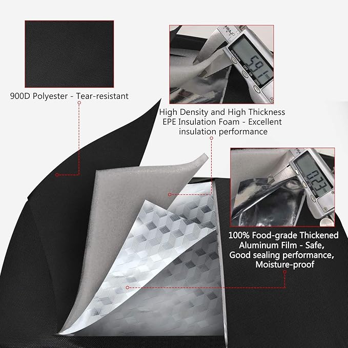 • 【Premium Insulation】Thickened Aluminum Foil + EPE Foam Keeps Food Cold/Warm 3-4 Hours