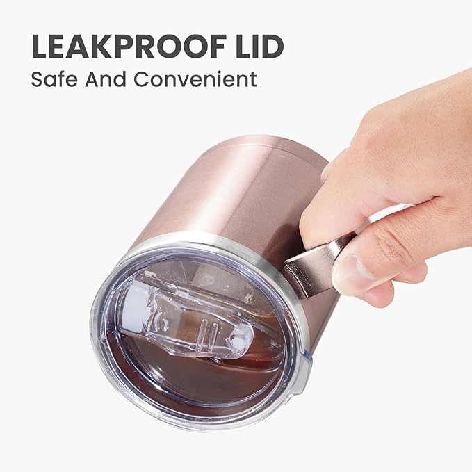MEWAY 12oz Coffee Mug With Handle 8 Pack Bulk,Stainless Steel Insulated Travel Tumblers With Sliding Lid,Double Wall Vacuum Camping Cup for Hot & Cold Drinks Tea (Rose Gold,Set of 8)