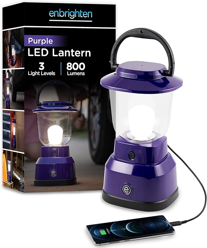 Enbrighten LED Large Camping Lantern, Battery Powered, USB Charging, 800 Lumens, 200 Hour Runtime, Carabiner Handle, Hiking Gear, Emergency Light, Blackout, Storm, Hurricane