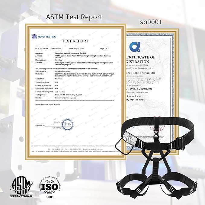 • [Material]:The half body Harnesses made of High strength polyester,Strong and Secure. SAFETY FIRST - CE 1282 EN353-1:2002, Half body climbing Harness you can trust. Seat Belt Weight limited:125KG / 276 lbs, breaking strength 18KN/4049 lbs.Tension◎15KN, Weight:1.23Ib(560g).