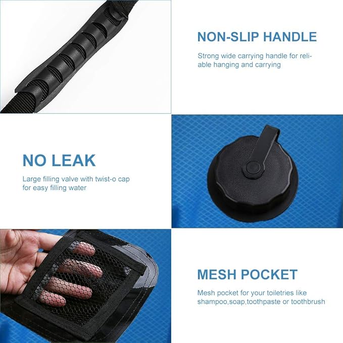 • 【High Water Capacity】This camping shower bag can carry up to 5 gallons/20L water for showering outdoor, let you enjoy a better and refreshing shower anywhere. In addition, our portable shower bag is so compact and lightweight that you can carry it in luggage, backpack or car trunk conveniently.