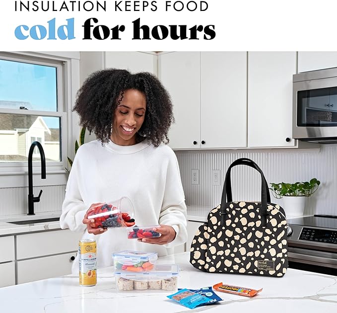 Fit & Fresh Lunch Bag For Women, Insulated Womens Lunch Bag For Work, Leakproof & Stain-Resistant Large Lunch Box For Women With Bottle Pocket, Long Straps, Zipper Closure Laketown Bag Black Cheetah