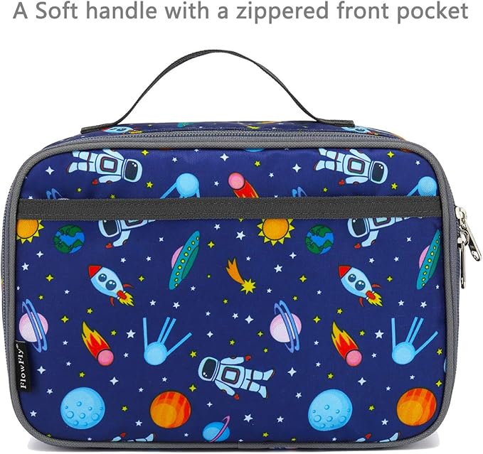 FlowFly Kids Lunch box Insulated Soft Bag Mini Cooler Back to School Thermal Meal Tote Kit for Girls, Boys, Astronaut