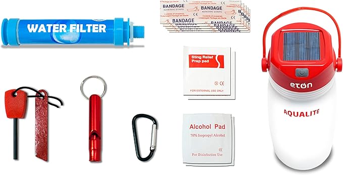 Eton Solar Powered Lantern with Integrated Water Bottle & Personal 8-Piece Emergency Survival Kit