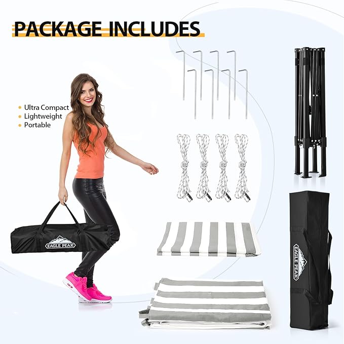 • EASY TO SETUP AND PUT AWAY: The EAGLE PEAK pop up system is more flexible and makes setup easy. The frame glides when opening and closing, enabling one person to easily open and close the canopy .