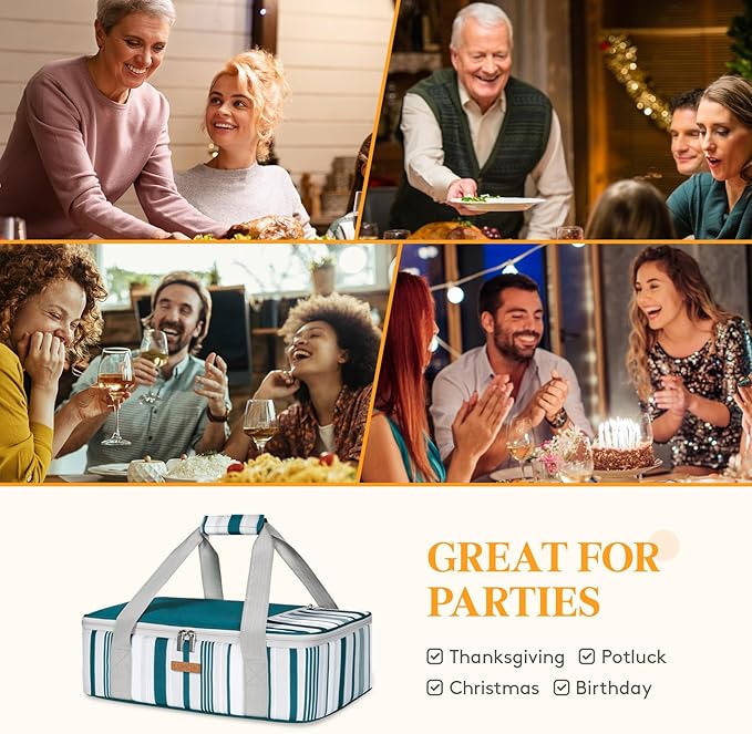 Insulated Casserole Carrier for Hot or Cold Food, Lasagna Lugger Tote for Potluck Parties/Picnic/Cookouts, Fits 9"x13" Baking Dish, Green