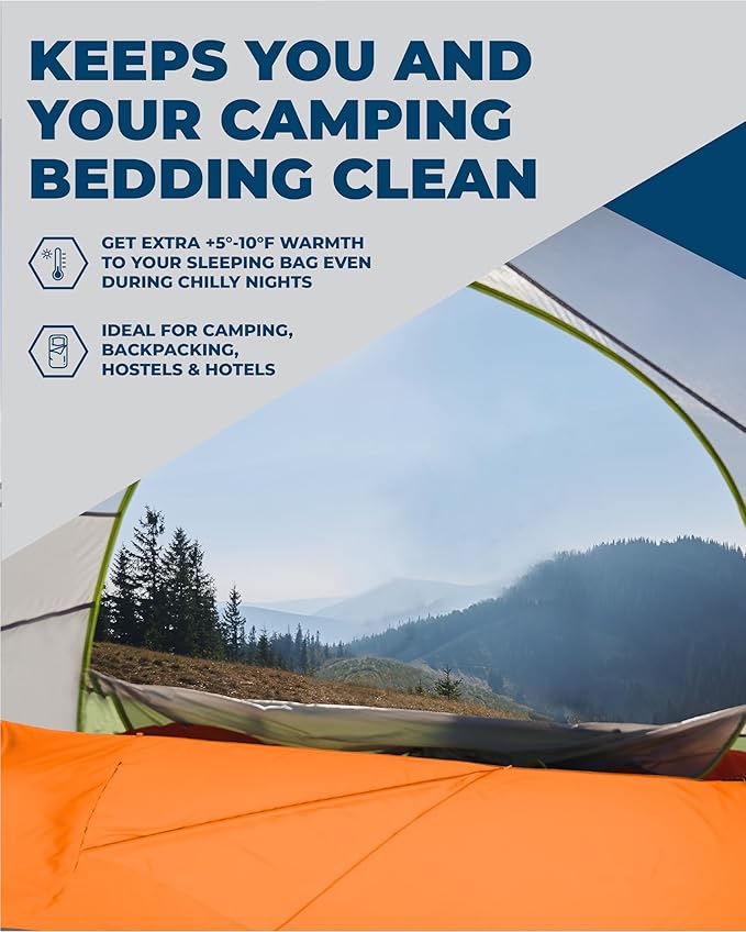 • KEEPS YOU AND YOUR CAMPING BEDDING CLEAN: Increase the longevity of your sleeping bag by protecting it from bacteria and sweat. Or bring it to camp and hostels to discourage those nasty bed bugs while at the same time adding extra warmth in cold weather and chilly nights.