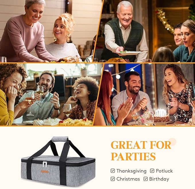 Insulated Casserole Carrier for Hot or Cold Food, Lasagna Lugger Tote for Potluck Parties/Picnic/Cookouts, Fits 9"x13" Baking Dish, Grey