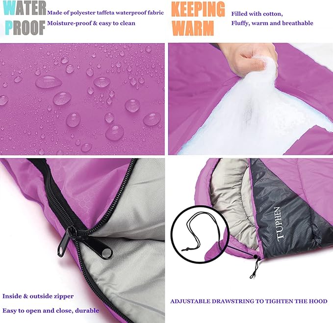 tuphen- Sleeping Bags for Adults Kids Boys Girls Backpacking Hiking Camping Microfiber Liner, Cold Warm Weather 4 Seasons Indoor Outdoor Use, Lightweight & Waterproof