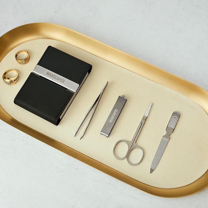MANSCAPED® Shears 2.0 Tempered Stainless Steel Men's Nail Kit, Fingernail Clippers, Safety Scissors, Tweezers and Nail File, Travel Manicure Pedicure Set, 4-Piece Luxury Grooming Kit with Compact Case