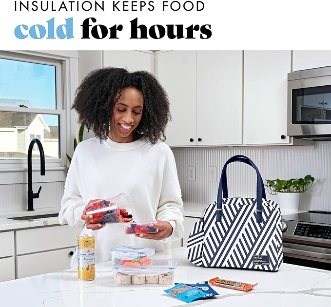 Fit & Fresh Lunch Bag For Women, Insulated Womens Lunch Bag For Work, Leakproof & Stain-Resistant Large Lunch Box For Women With Bottle Pocket, Zipper Closure Laketown Bag Navy Stripe Tumbler