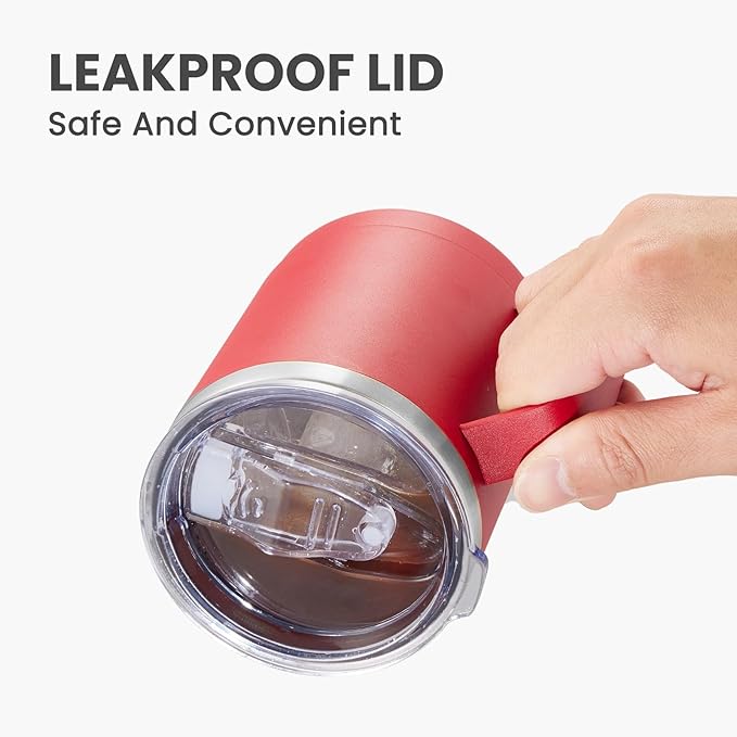 MEWAY 12oz Coffee Mug With Handle and Sliding Lid,Stainless Steel Travel Tumbler Cup with Handle,Double Wall Vacuum Insulated Camping Cup for Hot & Cold Drinks Tea (Red,Set of 1)