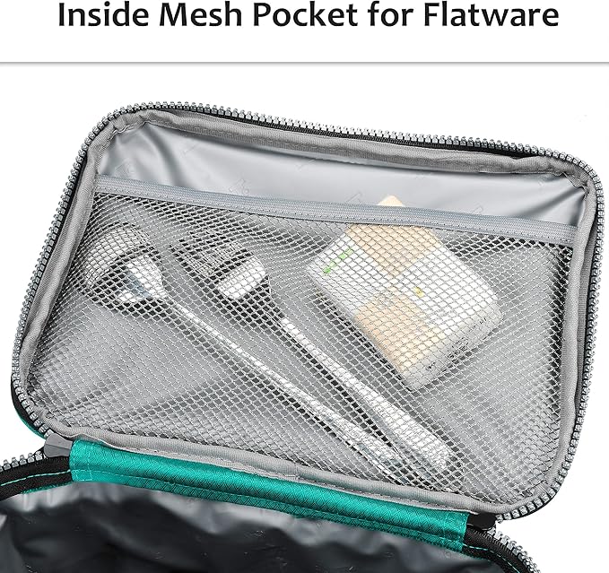 • LARGE CAPACITY: Measuring 9.8 x 7 x 7.8 inches, this adult lunch box offers plenty of room for meals and snacks. It also features a front zipper pocket for essentials like keys and napkins, side mesh pockets for water bottles, and an interior mesh pocket for cutlery like forks, spoons, and knives, making it the perfect lunch box for men or women who pack meals for the day.
