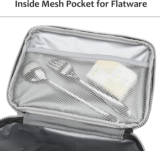 • LARGE CAPACITY: Measuring 9.8 x 7 x 7.8 inches, this adult lunch box offers plenty of room for meals and snacks. It also features a front zipper pocket for essentials like keys and napkins, side mesh pockets for water bottles, and an interior mesh pocket for cutlery like forks, spoons, and knives, making it the perfect lunch box for men or women who pack meals for the day.