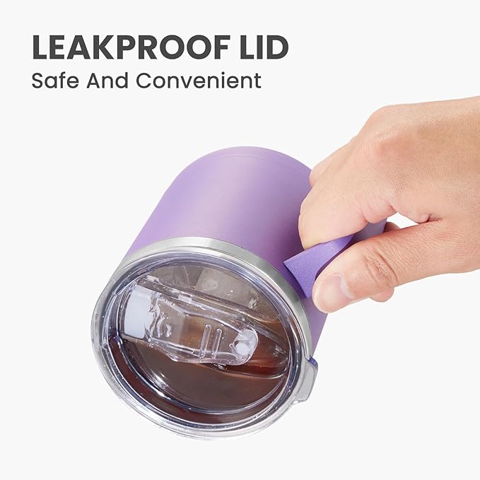 MEWAY 12oz Coffee Mug With Handle 8 Pack Bulk,Stainless Steel Insulated Travel Tumblers With Sliding Lid,Double Wall Vacuum Camping Cup for Hot & Cold Drinks Tea (Purple,Set of 8)