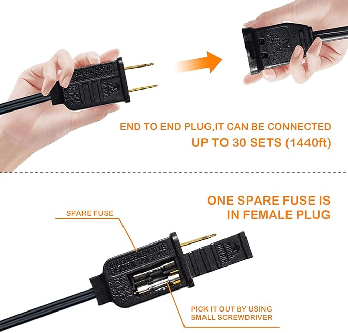 • Easy Installation & Saving:Female Plug, Easy to Connect Power Cord Ends. The bulbs are all replaceable for maximum cost savings. Please check to see if it matches the string of lights before buying the bulbs