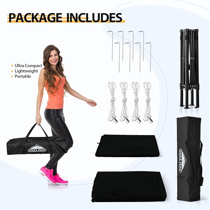 • EASY TO SETUP AND PUT AWAY: The EAGLE PEAK pop up system is more flexible and makes setup easy. The frame glides when opening and closing, enabling one person to easily open and close the canopy .