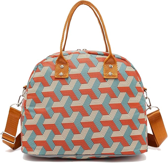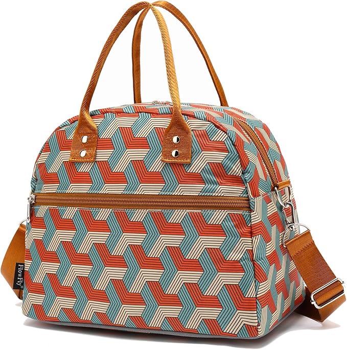 FlowFly Insulated Lunch Bag With Shoulder Strap for Women, Men, and Kids, Large and Reusable, Handle, Freezable Work and School Travel Tote and Meal Prep Organizer,Stereoscopic Red