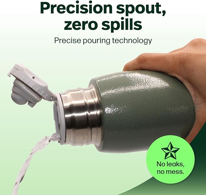• KALMATEH LEAK PROOF TECHNOLOGY: Leak-proof design with precise pouring technology ensures your drink stays in the bottle. Perfect for on-the-go use, preventing spills and keeping your belongings dry.