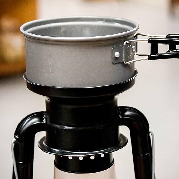 Rayo Heater Cooker Emergency Lantern, Non-Electric Fuel Lamp with Cooking Pot for Camping or Emergencies, 10-12 Hour Burn, Black, 15"