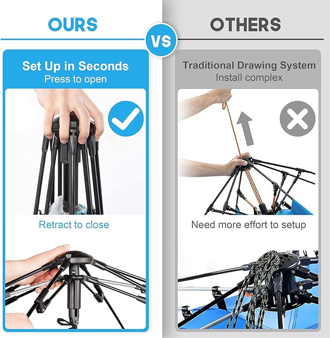 • Easy Set Up & Portable: Quick pop-up mechanism allows setting in under 30 seconds! Light weight, packs down to 36" x 5" for easy carrying and storage.