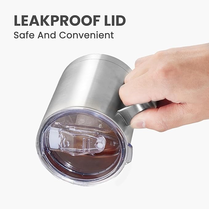MEWAY 12oz Coffee Mug With Handle 2 Pack Bulk,Stainless Steel Insulated Travel Tumblers With Sliding Lid,Double Wall Vacuum Camping Cup for Hot & Cold Drinks Tea (Sliver,Set of 2)