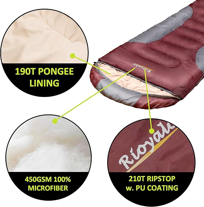 0 Degree Winter Sleeping Bags for Adults Camping (450GSM) - Temp Range (5F–32F) Portable Waterproof Compression Sack- Camping Sleeping Bags for Big and Tall in Env Hoodie: Backpacking Hiking 4 Season