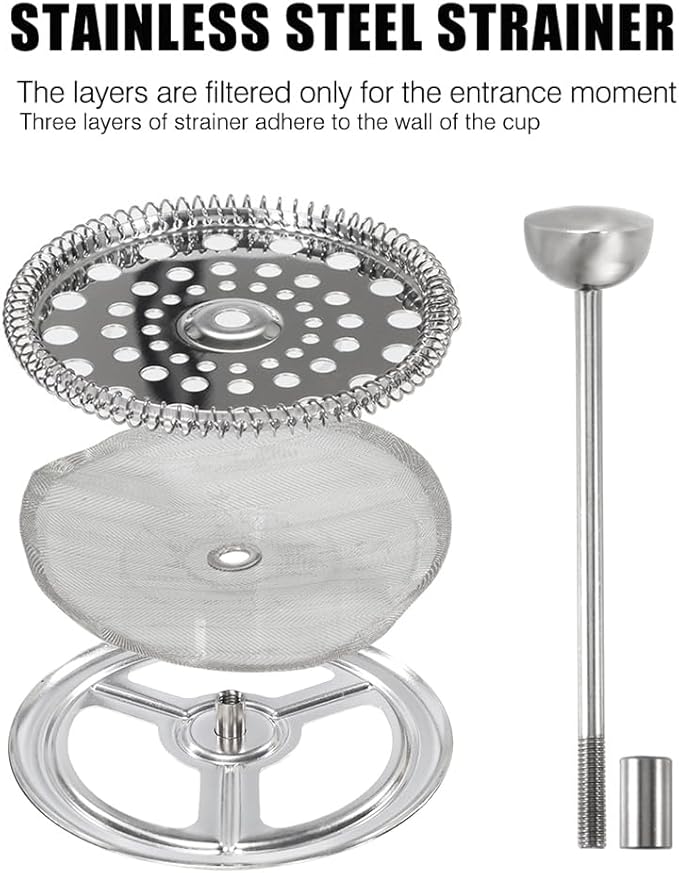 • HIGH QUALITY: Titanium Cup Camping Coffee Pot Titanium Mug made of premium titanium.French coffee filter made by high quality stainless steel.Titanium pot and stainless steel french press, anti-corrosion and durable. Titanium pot will not impart odor or taste to the beverage.