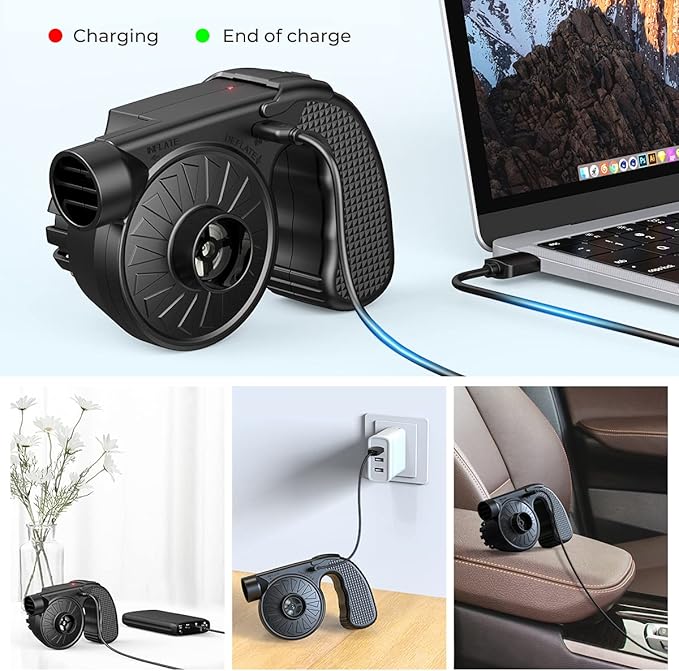 • Cordless and Rechargeable: Once connecting it to a proper power outlet for a full charge, the rechargeable air pump can last approx 30 minutes under 500L/min air flow, 0.5PSI air pressure working mode. Less time charging and more time doing.