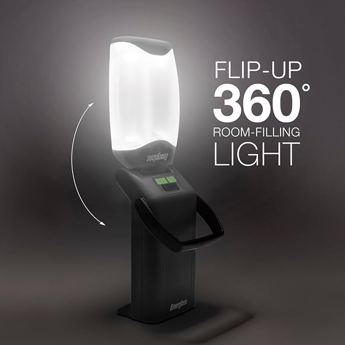 • [Powerful LED Area Light]: One (1) Energizer Emergency Folding LED Lantern in black (requires 4 D batteries)