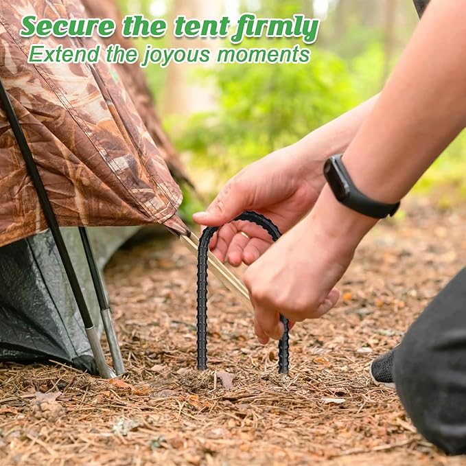 • 【KEEP YOUR KIDS SAFETY】Children's safety should be given priority. 12 inch U-shaped rebar stakes can prevent the trampoline from overturning or moving during use,and protect children from falling down and hitting the ground. For the safety of your baby and the peace of mind of parents, every parent should consider buying some extra things to fix your trampoline,camping tent or your child's football goal and swing.