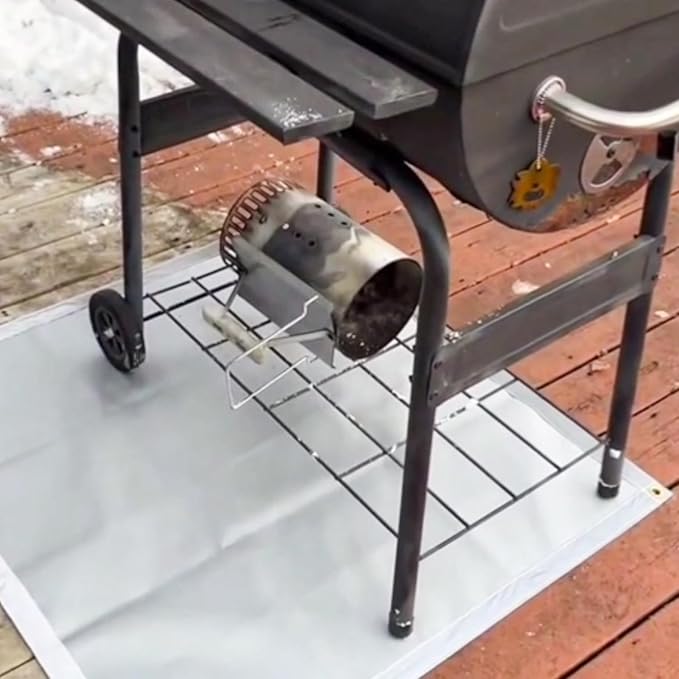 • Visible at Night - Upgrade with 4 reflective strips, this outdoor fire pad makes you more visible in the dark and improves safety through high-reflectivity edges for close range visibility. That grilling floor mat for under outdoor grill is a good warning at night and important for guest safety. If you have a hobby of barbecue at night, get upgrade fire pit mat NOW!
